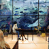 【オリジナルイラスト】正方形ポストカード 「海のカフェ」
